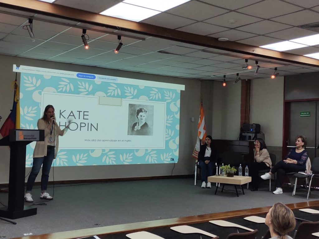 Las ponencias anteriores dieron a la profesora unimetana Michelle Haiek, un espacio para mostrar, en su ponencia sobre “Kate Chopin”, cómo la literatura en inglés es un ejercicio de comprensión y conexión entre lenguas, culturas, tiempos históricos y diversos personajes que expande el criterio y la mentalidad de quien la analiza.