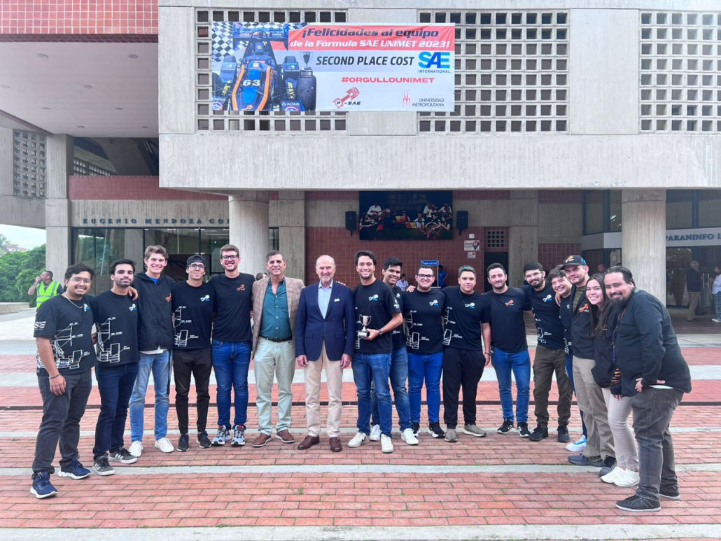 El pasado 8 de junio los miembros del equipo rectoral, Marisa Guinand, rectora; Natalia Castañón, vicerrectora académica; María Gabriela Escalona, vicerrectora administrativa y Santiago Perera, secretario general; acompañados de la decano de la Facultad de Ingeniería, Doris Baptista y de la decano de Estudiantes, Yennise Guerrero, homenajearon, en representación de toda la comunidad unimetana, a los miembros de la agrupación FSAEUnimet, luego de su exitosa actuación en la competencia Formula SAE, realizada en Michigan, EEUU, del 16 al 20 de mayo, donde obtuvieron el segundo lugar de 121 equipos en el Cost and Manufacturing event y el puesto 66 de 121 equipos en los resultados generales.
