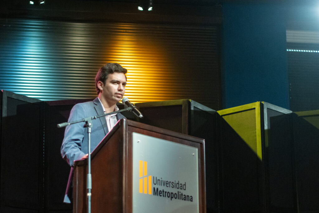 Leonardo Suárez, actual presidente de la Federación de Centros de Estudiantes de la UNIMET, deseó a los representantes electos el mayor de los éxitos en su gestión y aseguró que con simpatía, gallardía y don de gente lograrán con éxito servir a la universidad. “La idea es dejar la misma universidad que hemos construido”.